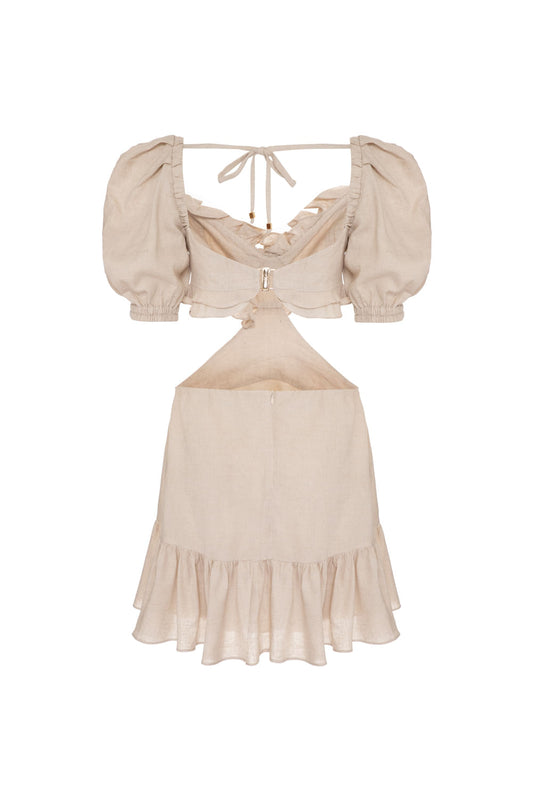 EsgotadoVESTIDO CURTO BABADO LINHO NATURAL
