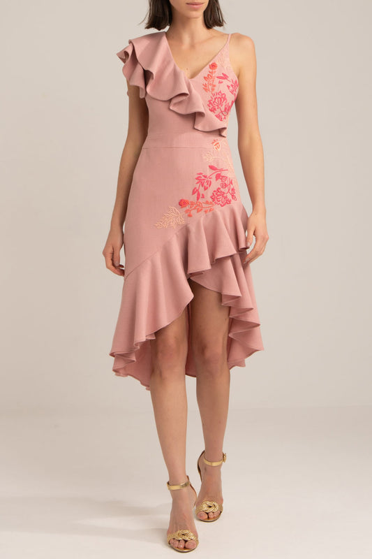 VESTIDO CURTO BABADOS CHIFFON TURNER ROSA