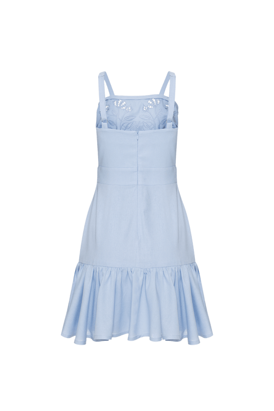 VESTIDO CURTO BABADO LINHO RICHELIEU URBAN AZUL