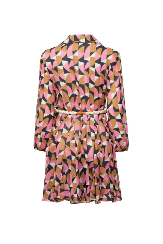 VESTIDO CURTO BOTÕES GEOMÉTRICO ZELLIJ ROSE