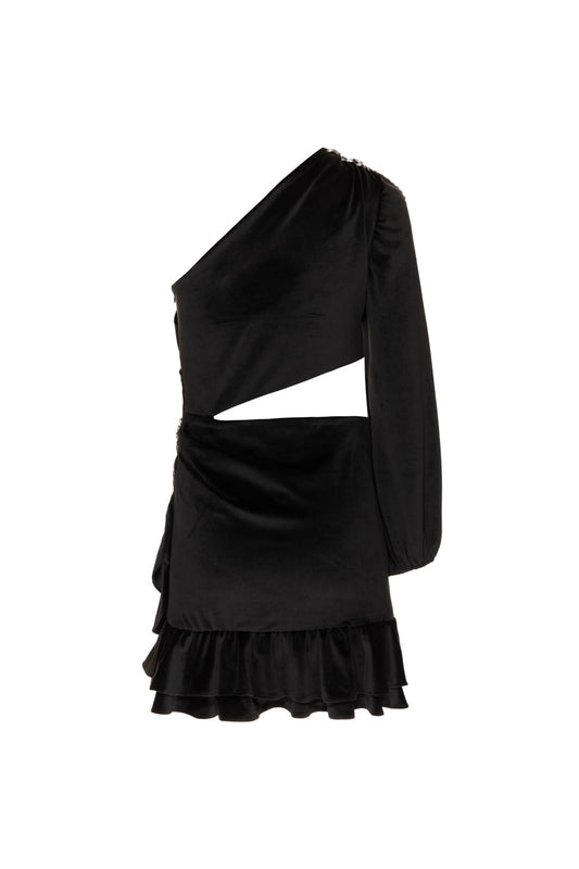 VESTIDO CURTO BORDADO VELUDO BABYLON PRETO