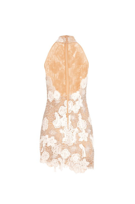 VESTIDO CURTO BOSSA CROCHET BEGE