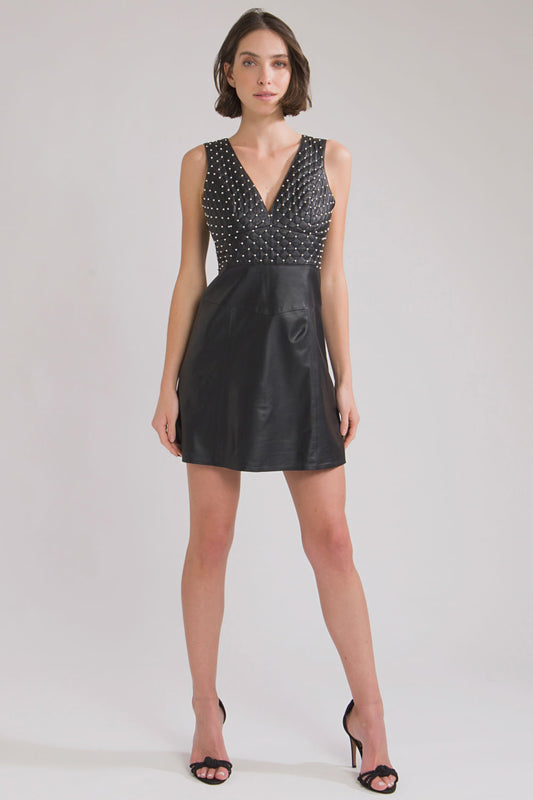 EsgotadoVESTIDO CURTO DE COURO PRETO