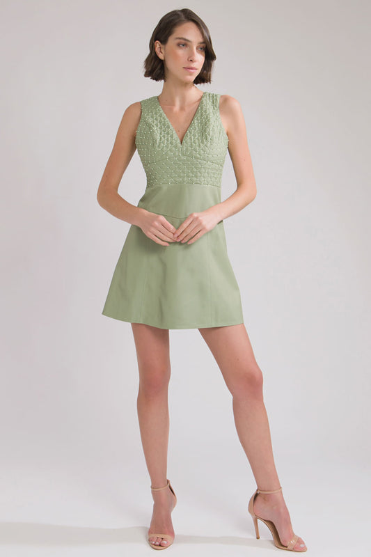 VESTIDO CURTO CRYSTAL TWEED VERDE