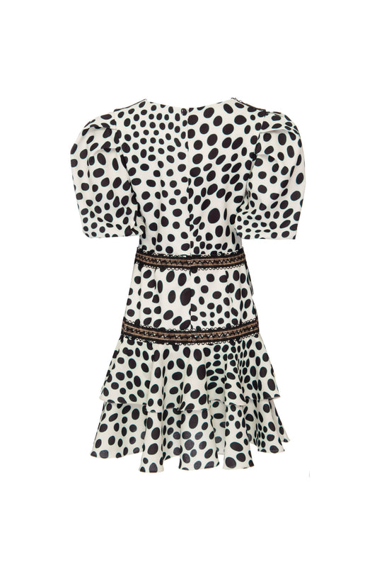 VESTIDO CURTO DAMASCENA OFFWHITE E PRETO