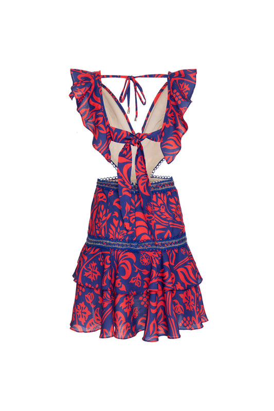 VESTIDO CURTO ENTREMEIO TROPICAL GRÁFICO AZUL