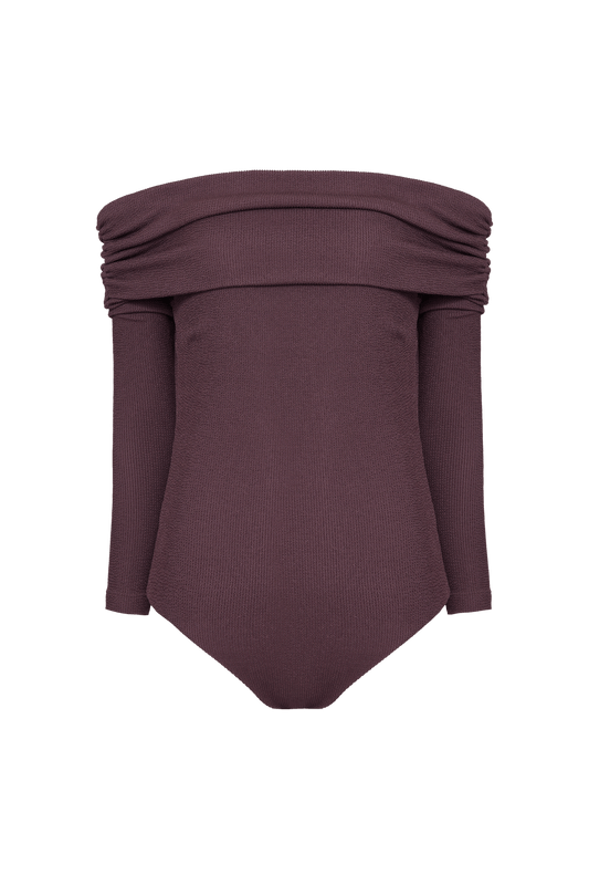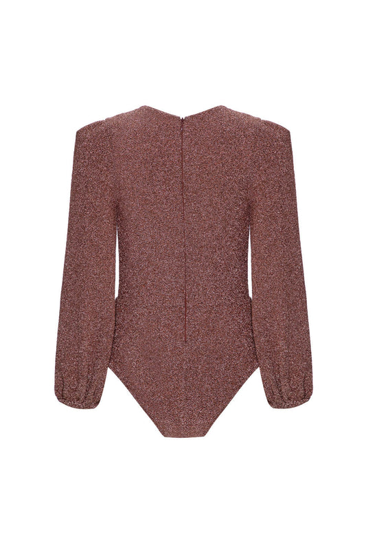 EsgotadoBODY MANGA LONGA LUREX BARDOT COBRE