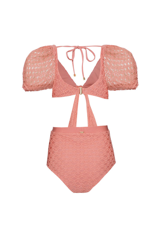 EsgotadoBODY MANGA BUFANTE LYCRA FEMME CORAL