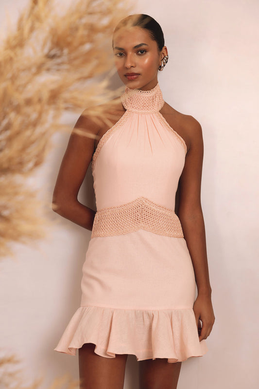 EsgotadoVESTIDO CURTO LINHO SOFT GLAM ROSE