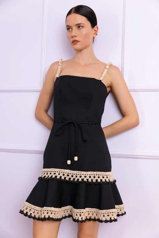 EsgotadoVESTIDO CURTO LAÇO CREPE DAISY PRETO