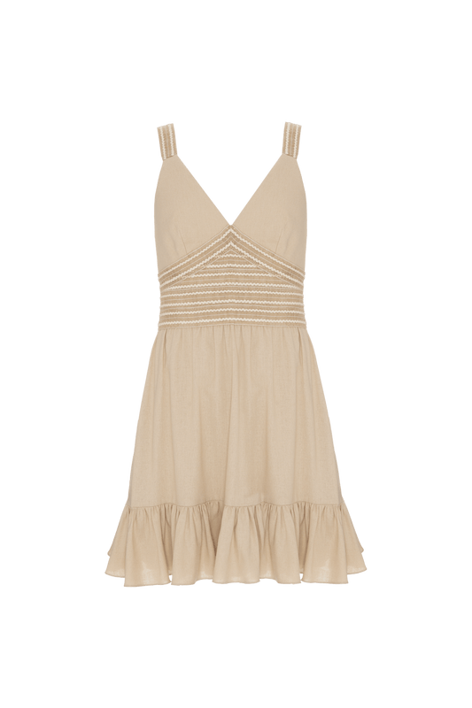 EsgotadoVESTIDO CURTO LINHO NATURE BEGE