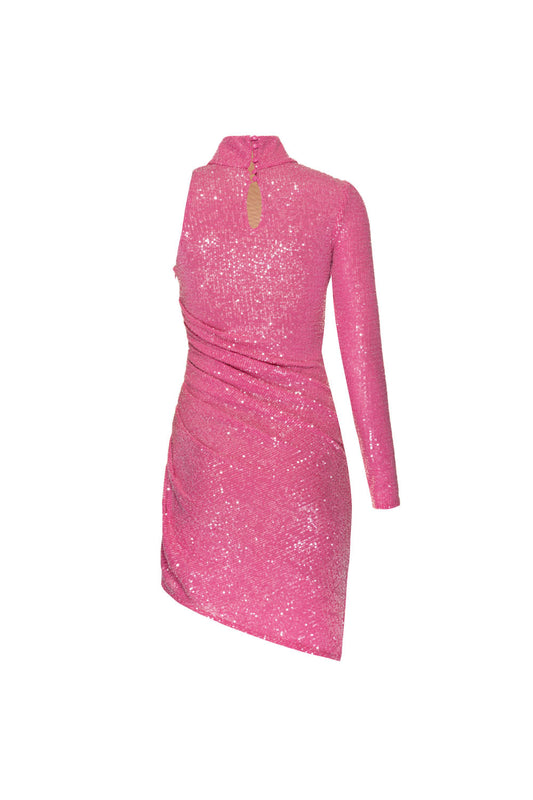 VESTIDO CURTO MANGA ÚNICA PAETÊ DUCHESS ROSA