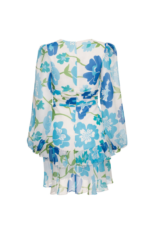 VESTIDO CURTO MANGA LONGA RETRÔ FLOWER OFF WHITE