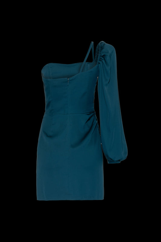 VESTIDO CURTO MANGA ÚNICA CETIM OLD GLAM VERDE
