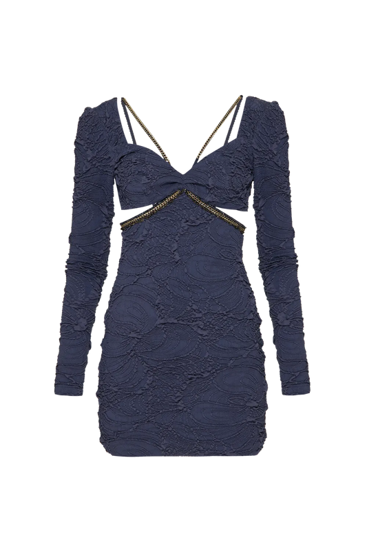 VESTIDO CURTO MALHA JACQUARD AZUL ESCURO