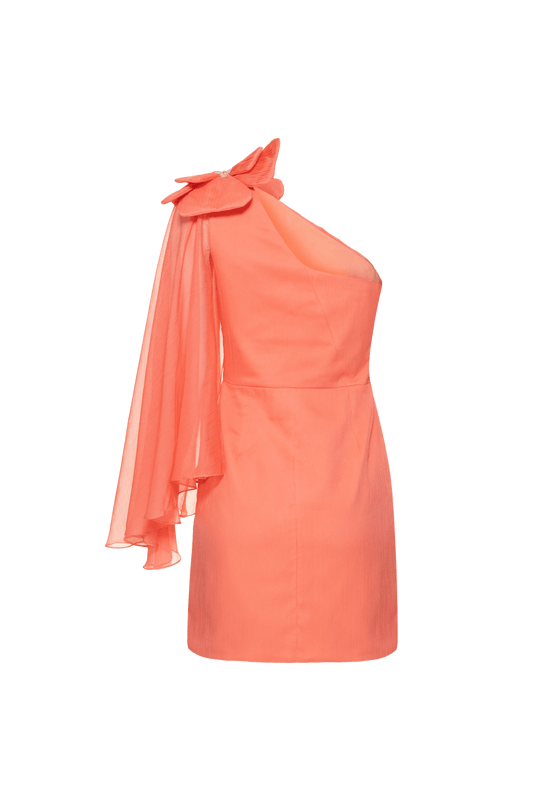 VESTIDO CURTO MANGA ÚNICA SILKY MODERN LIGHT CORAL