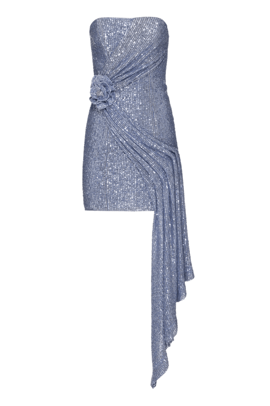 VESTIDO CURTO PLUMAS PAETÊ ACQUA AZUL