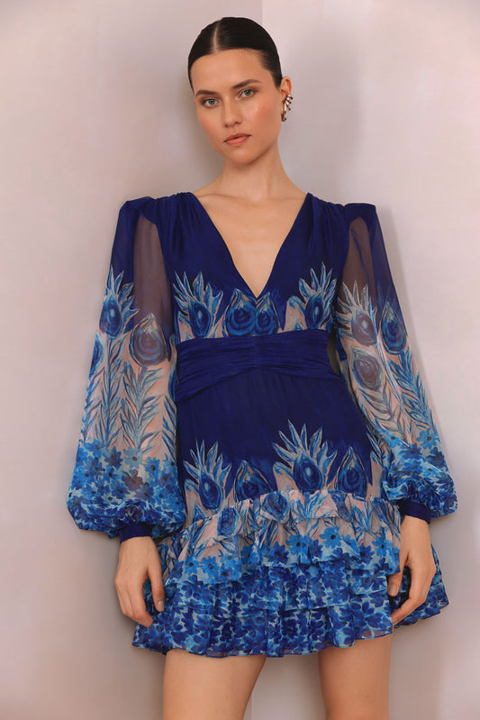 VESTIDO CURTO PLUMAS DEGRADÊ KOBAI AZUL