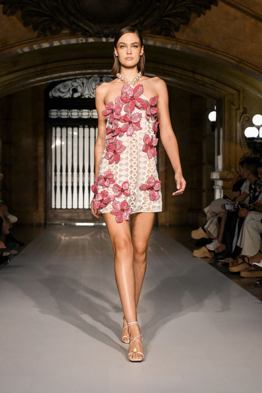 EsgotadoVESTIDO CURTO RICAMARE ROSA
