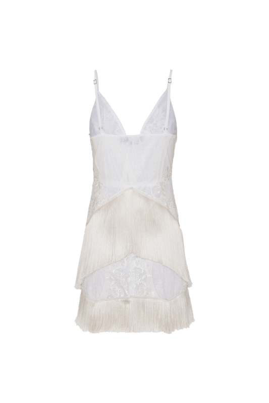 VESTIDO CURTO SAMBA FRINGE OFF WHITE