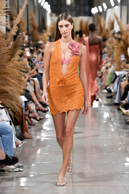 EsgotadoVESTIDO CURTO RENDA JOURNEY LARANJA