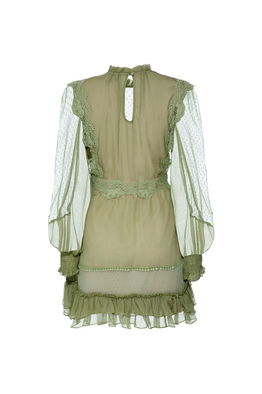 VESTIDO CURTO TULE POÁ SILKY PLISSÊ VERDE