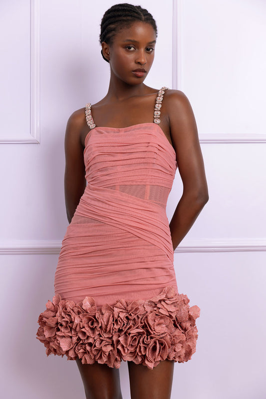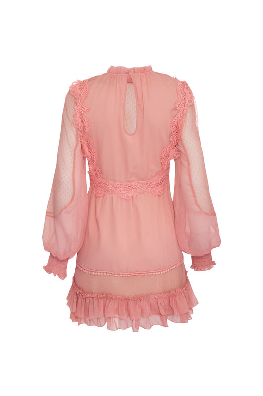 VESTIDO CURTO TULE AURORA BARRADO ROSA