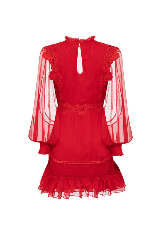 VESTIDO CURTO TULE POÁ SILKY PLISSÊ VERMELHO