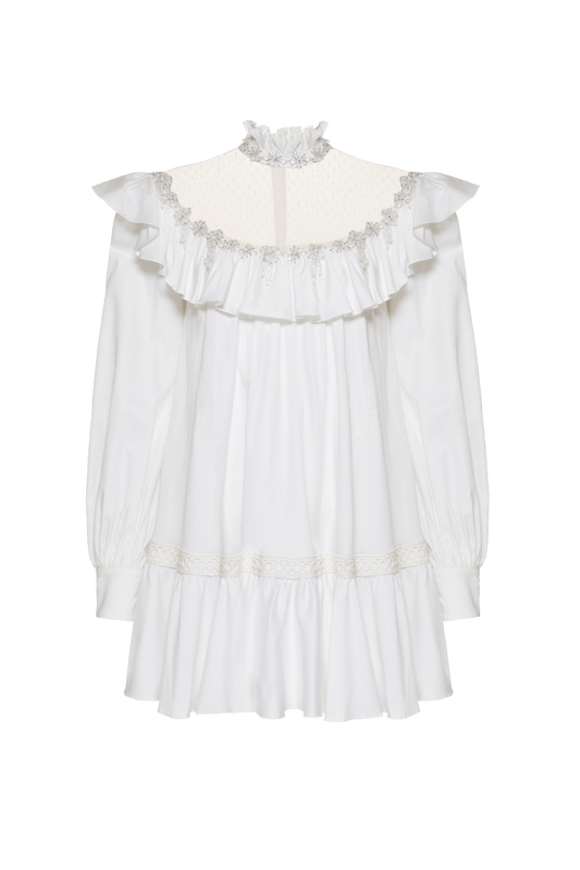 VESTIDO CURTO TULE RICAMARE OFF WHITE