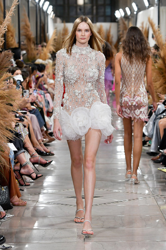 VESTIDO CURTO TULE TROPICAL PEARL CRU