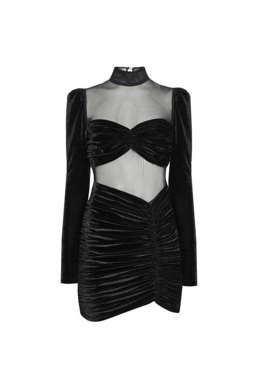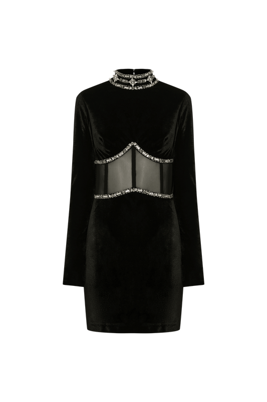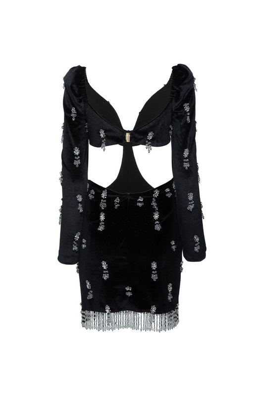 VESTIDO CURTO VAZADO VELUDO CRYSTAL PRETO