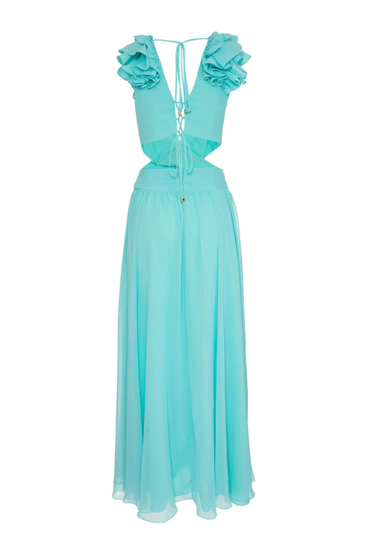 EsgotadoVESTIDO DECOTE TRANÇADO ACQUA