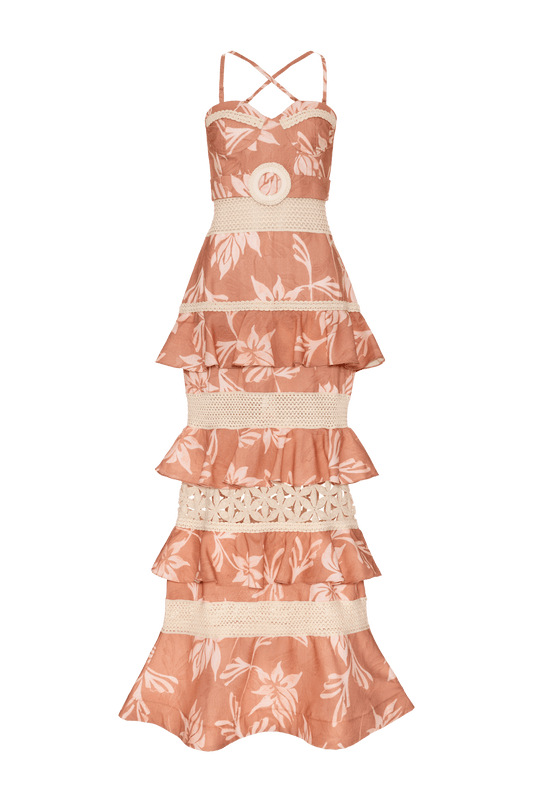 VESTIDO LONGO ARGOLA GARDEN COSMOS ROSA