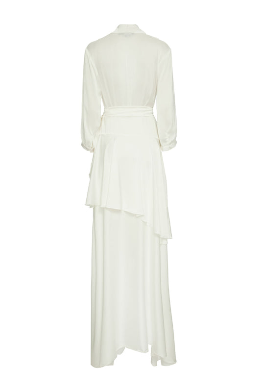 VESTIDO LONGO ASSIMÉTRICO CETIM STATEMENT OFF WHITE
