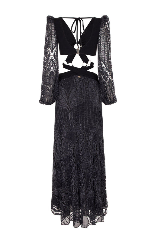VESTIDO LONGO ARGOLAS MANGA LONGA MALHA BASEL PRETO