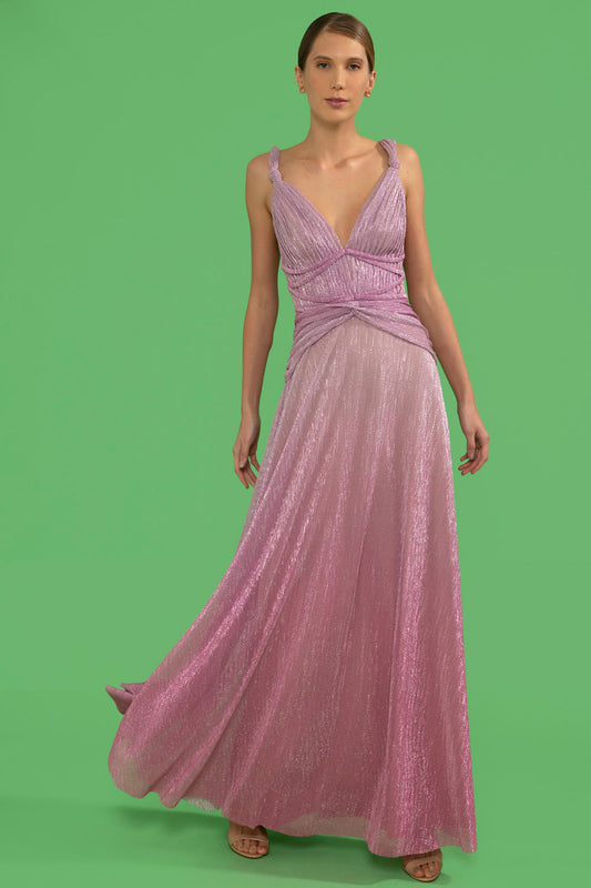 VESTIDO LONGO ALÇAS NÓ LUREX TWIGGY ROSA