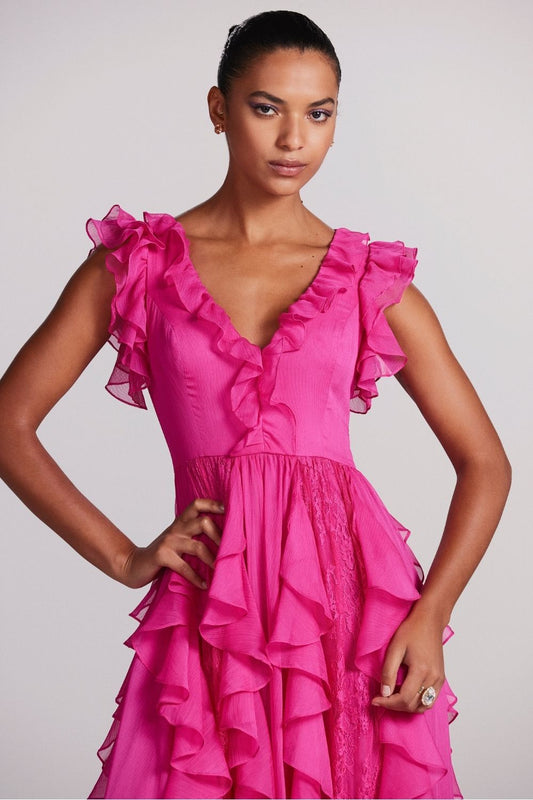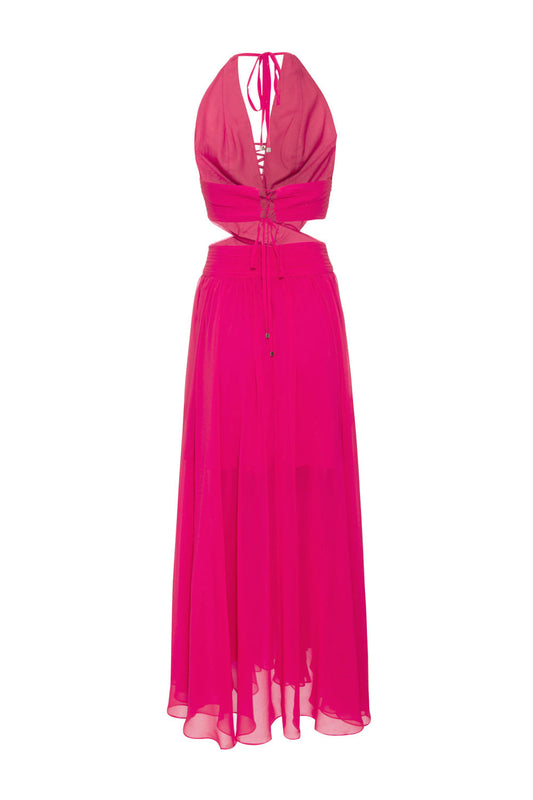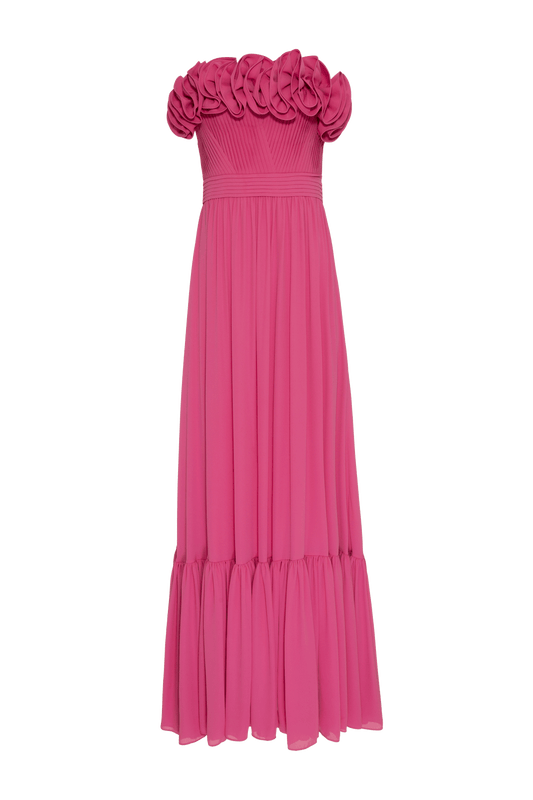 VESTIDO LONGO BABADOS CHIFFON ÍRIS PINK