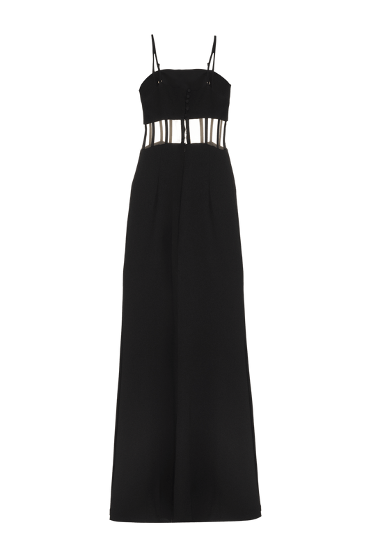 VESTIDO LONGO BICOLOR CREPE DAISY PRETO COM OFF WHITE