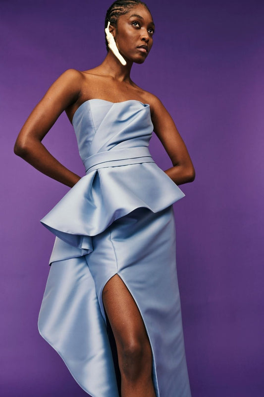 VESTIDO LONGO CAMADAS BABADO ZIBELINE CELESTE