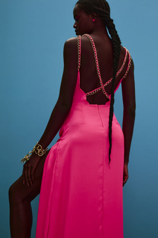 VESTIDO LONGO CORRENTE CETIM SLIP PINK