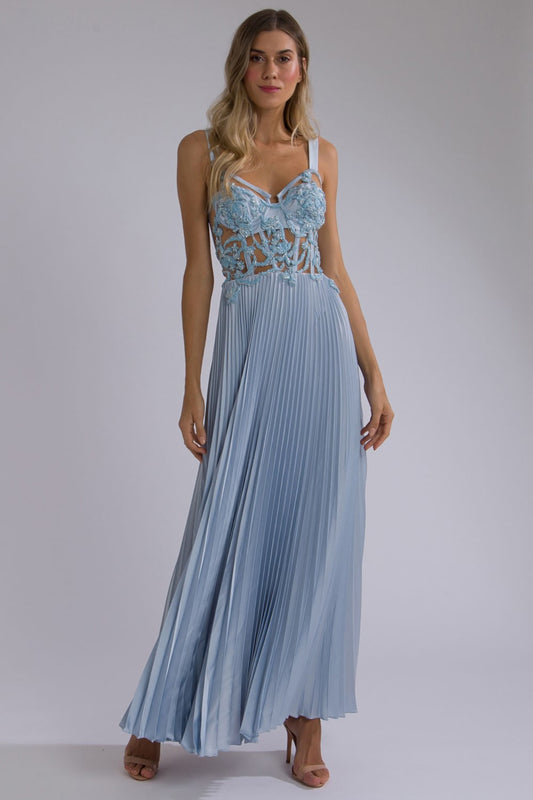 VESTIDO LONGO CORSET RENDA BORDADA AZUL