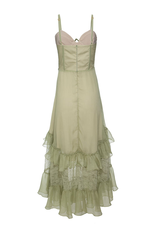 VESTIDO LONGO CORSET RENDA BORDADA VERDE