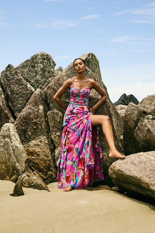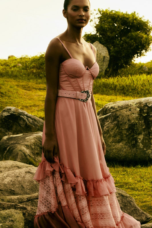 VESTIDO LONGO CORSET CHIFFON BLOOMING PINK