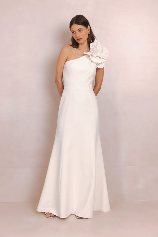 EsgotadoVESTIDO LONGO CREPE BLUME OFF WHITE