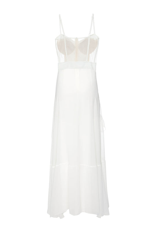 VESTIDO LONGO CORSET CHIFFON BLOOMING OFF WHITE