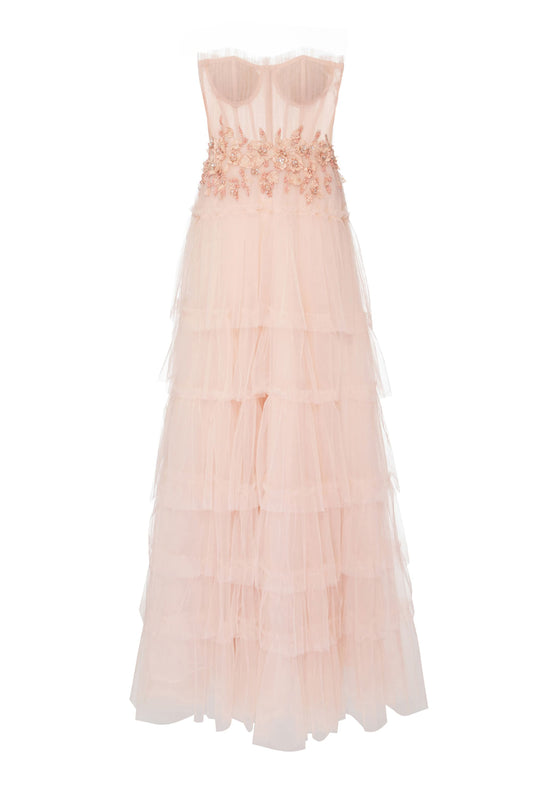 VESTIDO LONGO CORSET TULE SEM ALÇAS NUDE