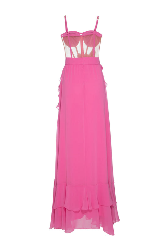 VESTIDO LONGO CORSET CHIFFON ÍRIS ROSA