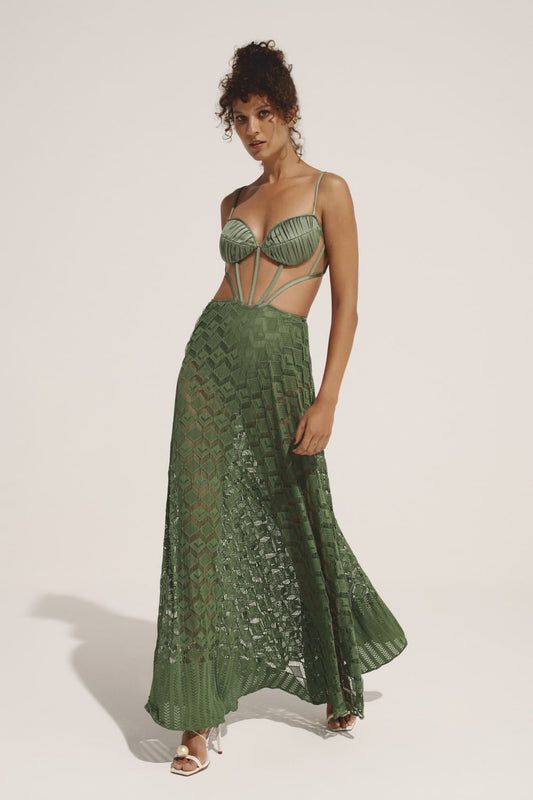 VESTIDO LONGO CORSET TELA GEO LUDIC VERDE