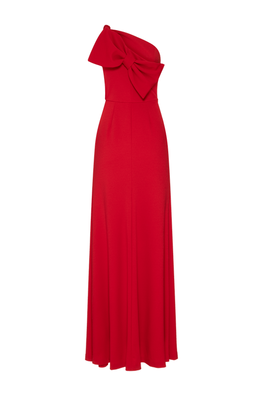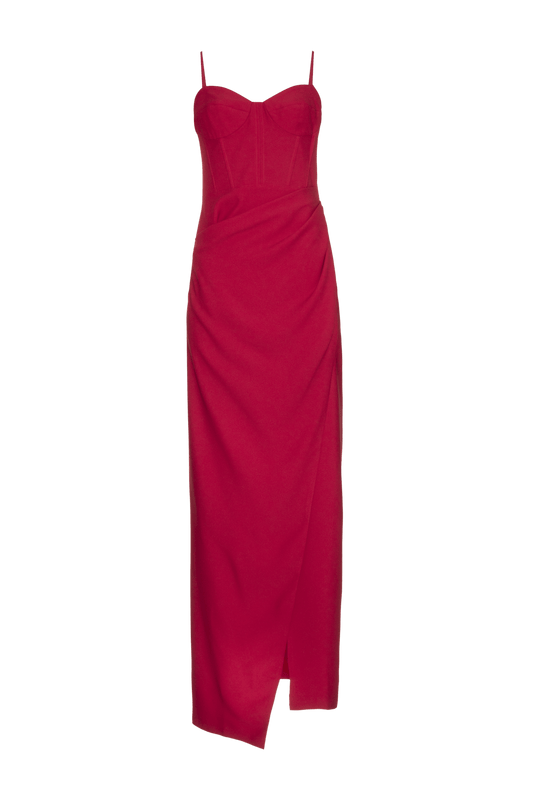 VESTIDO LONGO CREPE PETALS VERMELHO