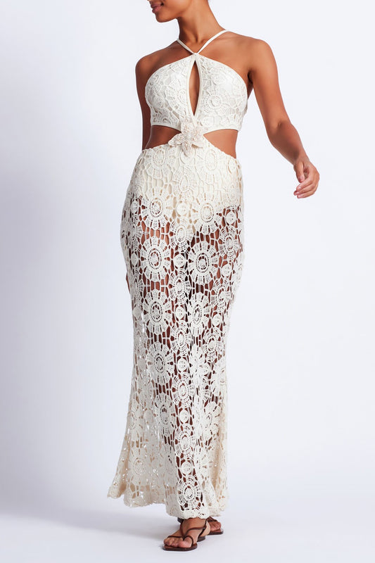 VESTIDO LONGO CROCHÊ NATURAL CHARM OFF WHITE